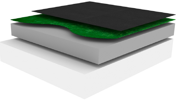 Для крыш небольшого уклона часто принято использовать ЭПДМ мембрану ELEVATE (Firestone) RubberGard. Она является отличным гидроизоляционным слоем кровли благодаря химическому составу: смеси синтетической резины с сажей, техническим маслом и вулканизирующими веществами.